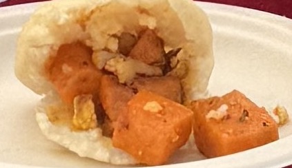 4. To assemble: Slice open the arepitas 2/3 of the way.  Stuff a bit of Cauliflower Carrot Sofrito mixture inside, followed by a bit of Salsa Verde.  Top with crumbled queso fresco, if desired.  Serve.
